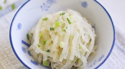 재료 : 무 3컵, 대파 2스푼, 간 마늘, 진간장, 설탕, 들기름, 깨소금, 쌀뜨물 1/2컵.