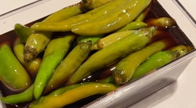 물기가 있으면 골마지가 필수 있으므로 완전히 닦아 통에 넣어 주세요. 양조간장 3C, 물 3C, 비정제 설탕 1C, 매실청 1/2C 넣고 한소끔 끓이다 끓으면 불을 끄고 식초 1C과 소주 1C 넣어 섞어 주세요. *소주를 넣으면 골마지가 피는 것을 미리 막습니다. 간장 소스를 식히지 않고 뜨거울 때 고추에 부어 누름돌이나 비닐로 떠오르지 않게 덮어 주세요. 일주일 정도 숙성시켜 드시면 진짜 맛있는 고추 장아찌가 완성되어요.